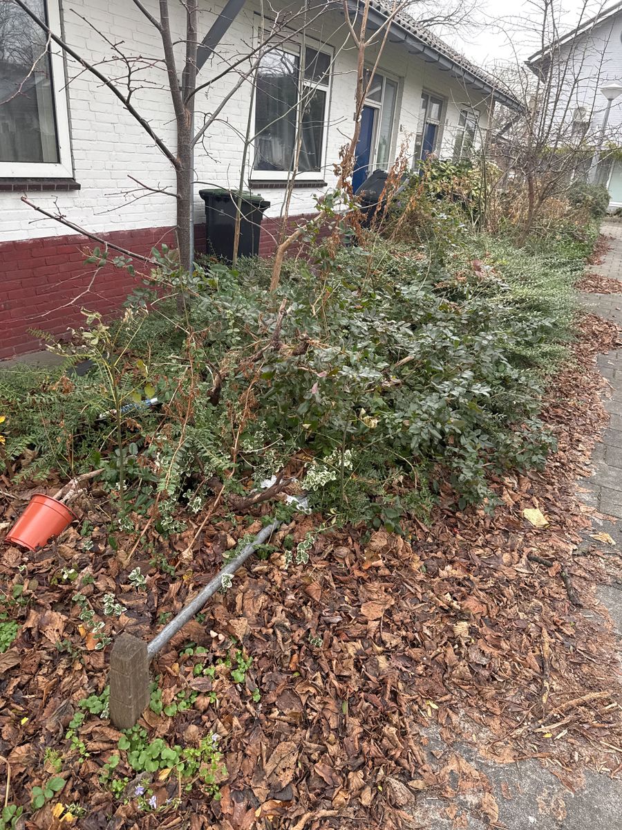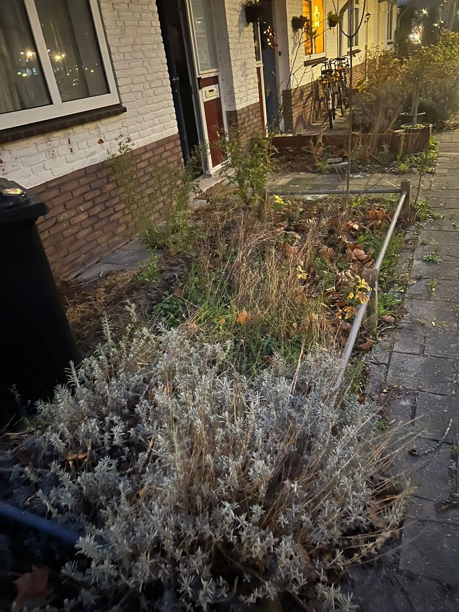 Al het onkruid planten en bladeren opgeruimd. Voor de rest weet ik niet zo goed hoe de voortuin er beter uit kan zien. Wij hebben daar zelf niet veel kennis over. Jullie zijn vrij om de tuin te veranderen tot het beeld dat past bij de buurt